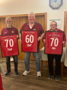 Nach dem formellen und informativen Teil hatten die „Alten Kameraden“ noch einige Geburtstagwünsche nachzuholen. Die langjährigen Vereinsmitglieder Udo Lindner, Fred Tullius und Ralf Keilhauer konnten auf einen runden Geburtstag zurückblicken. Die Alten Kameraden beglückwünschten die drei Mitglieder und wünschten für die Zukunft nur das Beste.