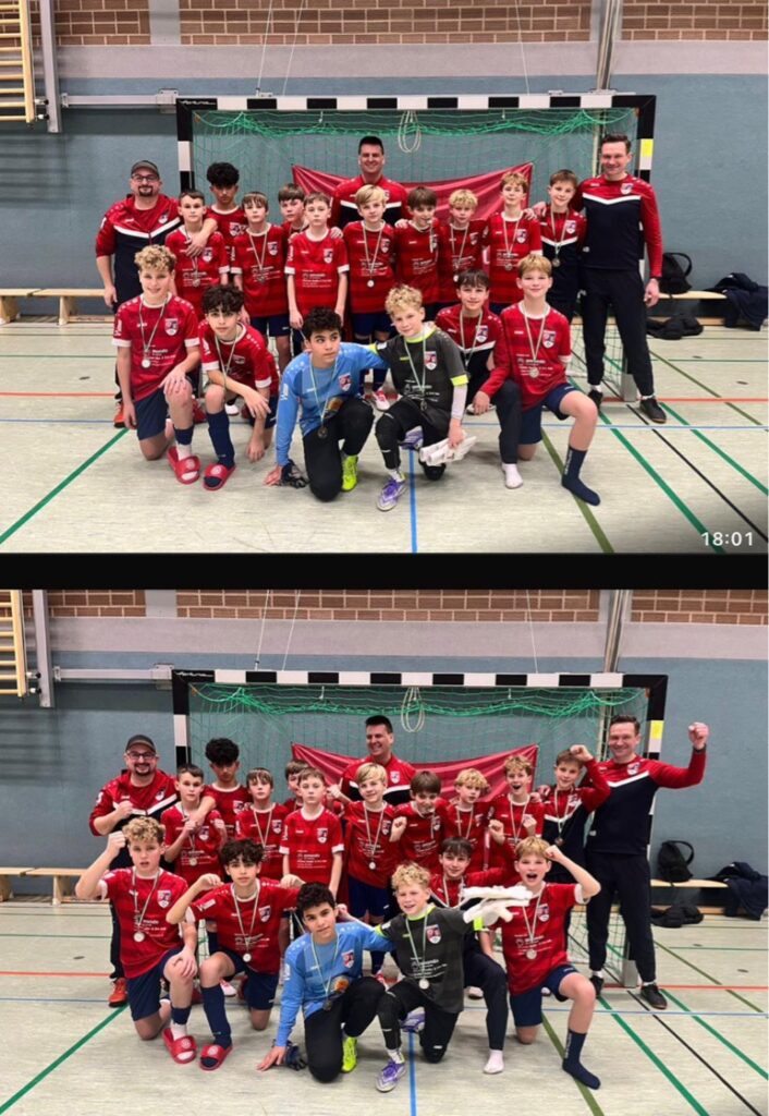 Am vergangenen Samstag eröffnete unsere D -Jugend das Wochenende um die Futsal-Hallenkrteismeisterschaften. Die zwei qualifizierten Mannschaften unserer D Jugend überstanden die Gruppenphase als erster und zweiter in Gruppe A und B und trafen somit im Halbfinale aufeinander. Das Spiel endete 1:1 und wurde im 7 Meterschießen zugunsten von Neitersen 2 entschieden. Neitersen 1 belegte nach einem packenden Spiel und erneuten 7 Meterschießen den 4. Platz!