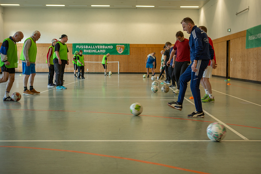 Neben Vereinsvertretern nahmen Privatpersonen sowie die Lebenshilfe Altenkirchen/Flammersfeld teil. Zunächst wurde der Gruppe einige Hintergrundinformationen wie die Regelkunde sowie ein kleiner historischer Überblick zur Entwicklung des Walking Football übermittelt.